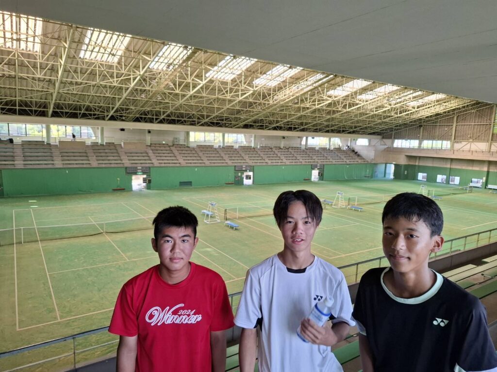 九州毎日テニス選手権は申込すれば誰でも出ることができ、強い子も多く参加する為、遠征での貴重な経験をいち早く積む事ができる絶好の機会だと思います。遠征を経験したことのない子は外に出る勇気と自立心を養い、そして経験を積んでさらに勝ち上がっていく為に他府県の子供たちのテニスを肌で感じ、その中で勝ち抜くためにはどうしたらいいかを考える。間違いなく成長への布石になるでしょう。今大会を通しての3人の成長に期待です(^ ^)