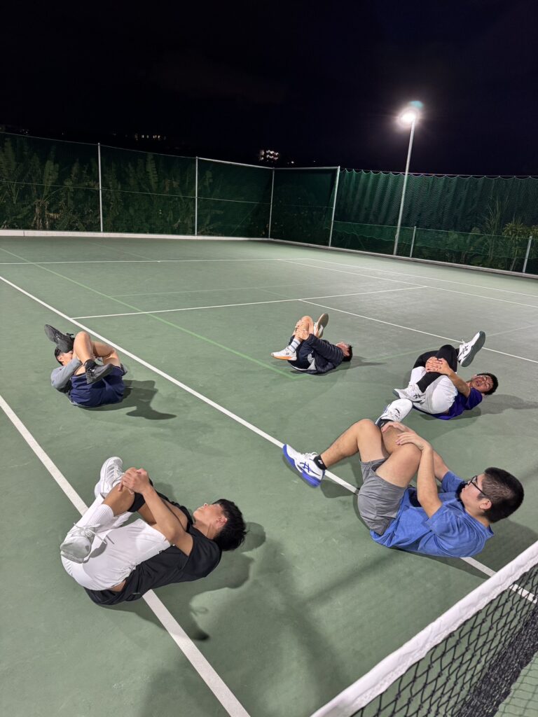 柔軟性の大切さ コーチ便り 2026.01.19 テニスは柔らかいタッチなのに体はめっちゃ硬い奴,体の硬さ通りのガッチガチのテニスと個性派ぞろいのジュニアですが(^^)体の柔軟性の維持は、ケガの予防としても大切です。技術が上達しても怪我をしてしまっては元も子もありません。でも地味な部分でなかなかサボりがちなのも正直なところ・・・(^^;) もっと離れてやったらいいのに・・・仲良しかよʅ(◞‿◟)ʃ